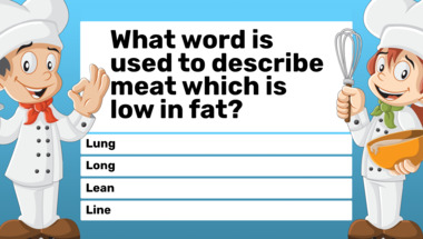 Look forward to questions like "What word is used to describe meat which is low in fat?" and "What diet excludes all animal products?"