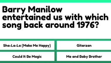 4/10 is the score to beat in this trivia quiz to put yourself over the average quiz taker. But you're probably going to be able to answer questions "Barry Manilow entertained us with which song back around 1976?" and "Terry Jacks entertained us with which song back around 1975?" easy!