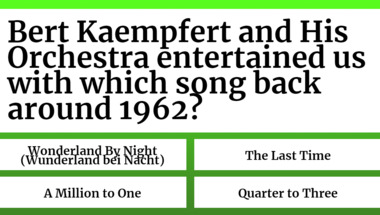 Look forward to questions like "Percy Sledge entertained us with which song back around 1967?" and "Bert Kaempfert and His Orchestra entertained us with which song back around 1962?"