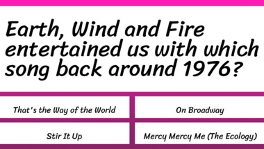 In this fun trivia quiz we're going to ask questions like "The Bee Gees entertained us with which song back around 1976?" and "Sammy Davis Jr. entertained us with which song back around 1973?".