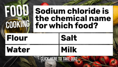 In this fun trivia quiz we're going to ask questions like "Sodium chloride is the chemical name for which food?" and "What cookery term means cutting vegetables into long, thin batons?".