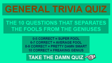 Can you beat the average score of 6/10 in this quite fun General Trivia quiz?