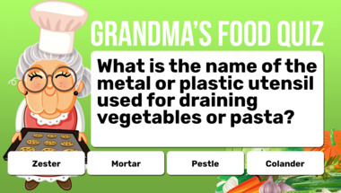 6/10 is the score to beat in this trivia quiz to put yourself over the average quiz taker. But you're probably going to be able to answer questions "What is the name of the metal or plastic utensil used for draining vegetables or past.." and "A sauce made from which fruit is often served with pork?" easy!