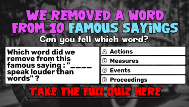 In this fun Famous sayings missing a word quiz we're going to ask questions like "Which word did we remove from this famous saying : "____ late than never" ?" and "Which word did we remove from this famous saying : "____ speak louder than words" ?".
