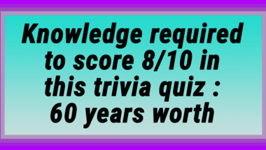 7/10 is the score to beat in this trivia quiz to put yourself over the average quiz taker. But you're probably going to be able to answer questions "The Beatles had a 1970 hit about a long and what road?" and "What type of lightning was John Travolta singing about in the 70s?" easy!