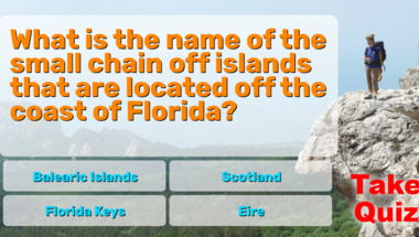 4/10 is the score to beat in this trivia quiz to put yourself over the average quiz taker. But you're probably going to be able to answer questions "What is the name of the small chain off islands that are located off the coast of Flo.." and "What is the smallest US state by area?" easy!