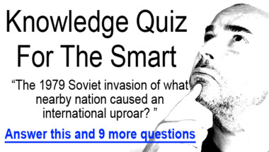 6/10 is what people on average are scoring in this trivia quiz so far. Are you ready to answer questions like "What is Colter Stevens trying to locate on the train in the movie "Source Code"?" and "The 1979 Soviet invasion of what nearby nation caused an international uproar? "