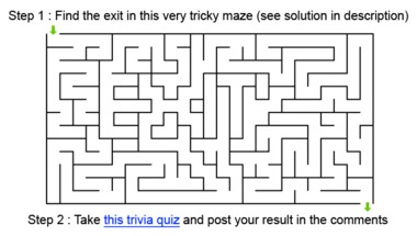 Two step challenge . 1) Solve maze 2) Take this trivia test