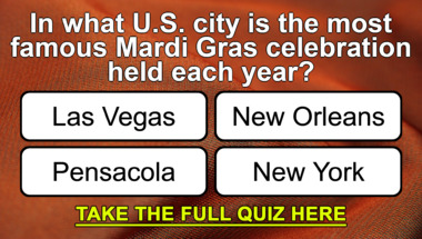 5/10 is the score to beat in this trivia quiz to put yourself over the average quiz taker. But you're probably going to be able to answer questions "In what U.S. city is the most famous Mardi Gras celebration held each year?" and "Which of these former Presidents was sworn in in 1961?" easy!