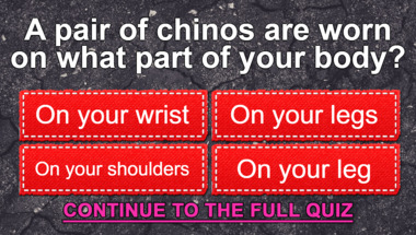 If you can answer "To change from one position or place to another is to?" and maybe even "A pair of chinos are worn on what part of your body?" there is a good chance that you're going to beat the average score of 5/10 in this trivia quiz