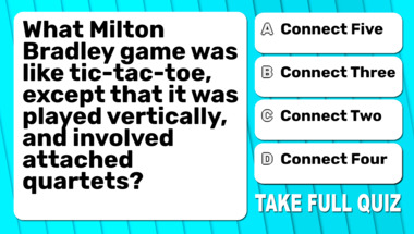 In this fun trivia quiz we're going to ask questions like "Taiwan is trying to gain independence from which country?" and "What Milton Bradley game was like tic-tac-toe, except that it was played vertically, ..".