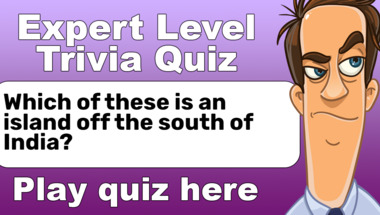 4/10 is what people on average are scoring in this trivia quiz so far. Are you ready to answer questions like "In what US state can you visit Moody Gardens, the Alamo and South Padre Island?" and "Which of these is an island off the south of India?"