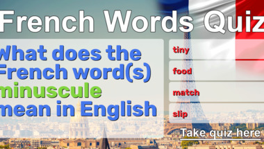 In this fun trivia quiz we're going to ask questions like "What does the French word(s) "minuscule" mean in English" and "What does the French word(s) "molécule" mean in English".
