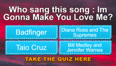 Look forward to questions like "Who sang this song : "I'm Gonna Make You Love Me"?" and "Who sang this song : "So Sad (To Watch Good Love Go Bad)"?"