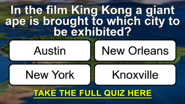 7/10 is what people on average are scoring in this trivia quiz so far. Are you ready to answer questions like "In the film King Kong a giant ape is brought to which city to be exhibited?" and "In which region of France did the allied troops land on 'D-Day' in 1944?"
